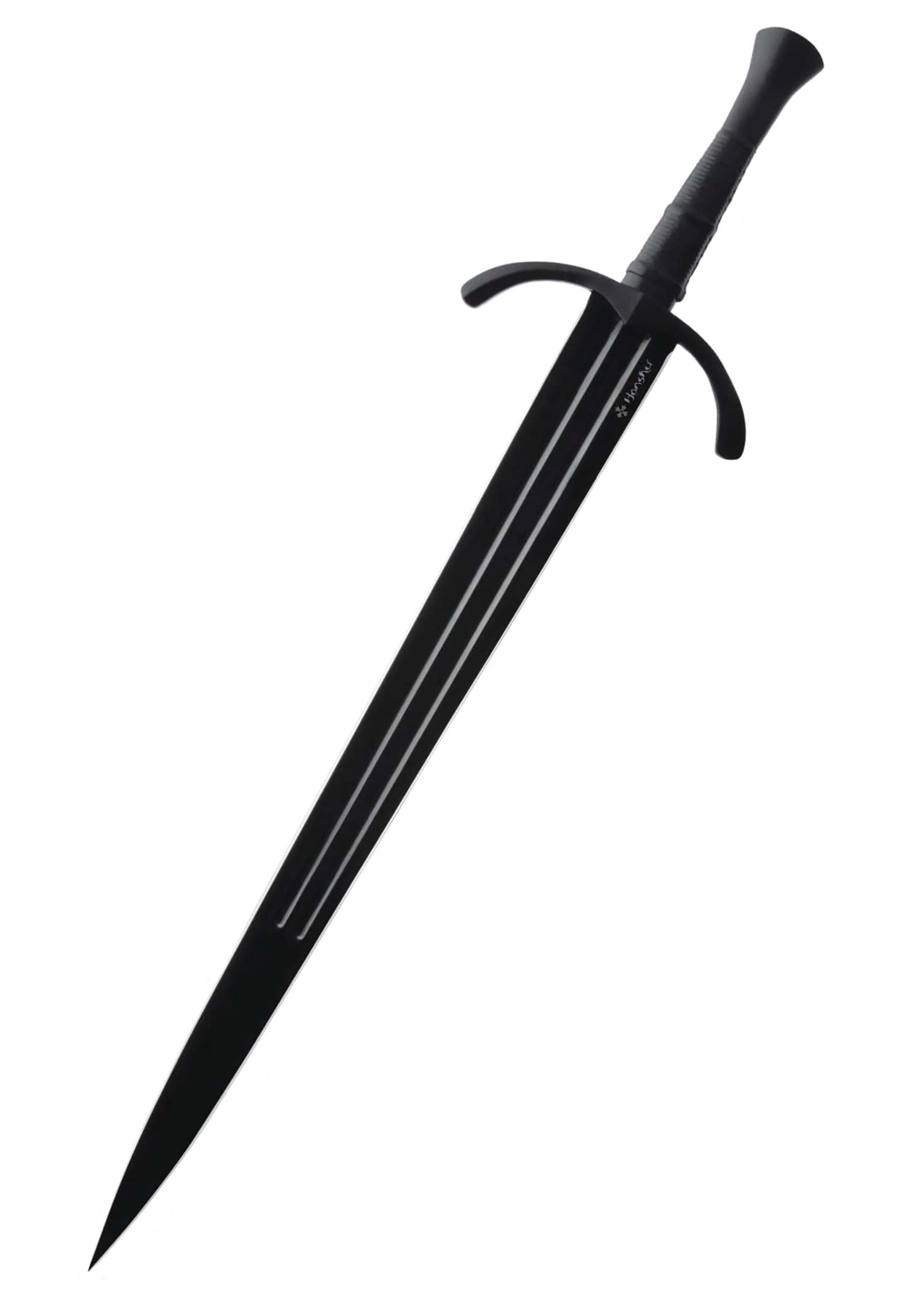 This beatuful sword has a sharp 31" blade made from 1065 high carbon steel with a black finish that extends from the polished black hand guard. The wooden handle is wrapped in black leather and the sturdy pommel is made from black steel. Measuring approximately 101 cm overall, the sword slides smoothly into the black leather scabbard which has metal accents. Honshu continues to expand its outstanding line of swords, and this sleek, tactical broadsword is a must-have for your collection!