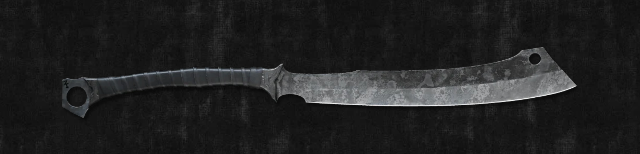 The Reaver Cleaver is a Zombie Tool and thus is: 5160 steel, full-tang, heat-treated to a Rockwell of 55, sharpened, comes with a custom leather sheath.